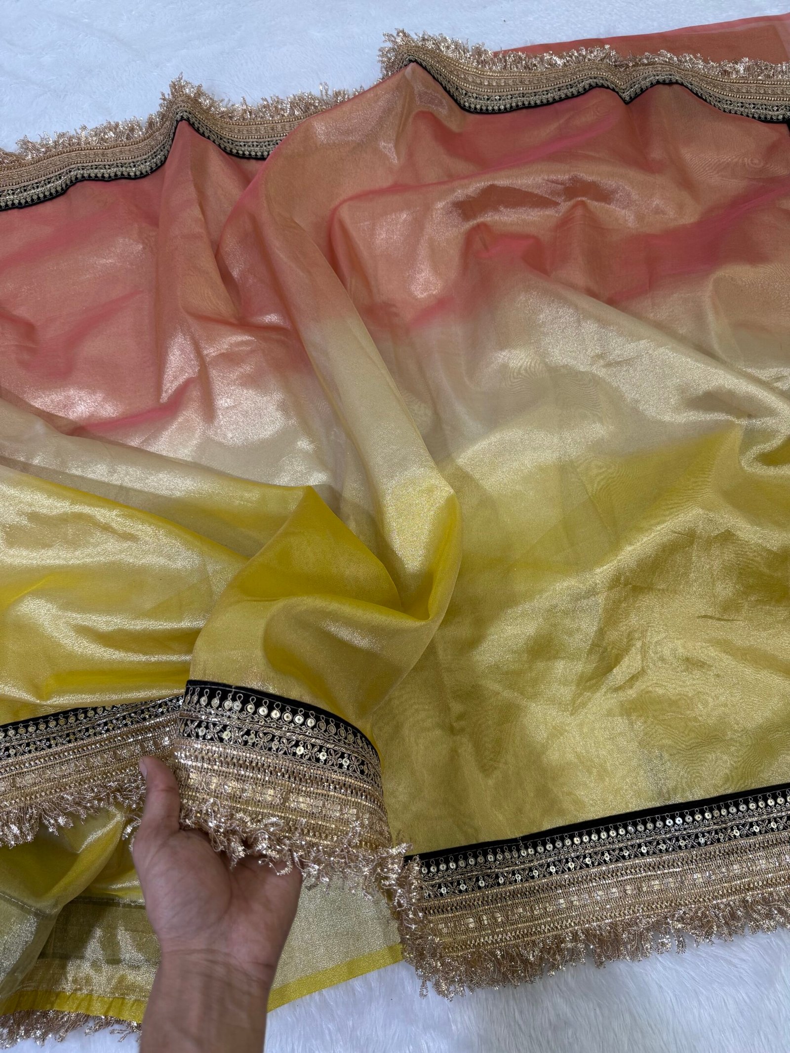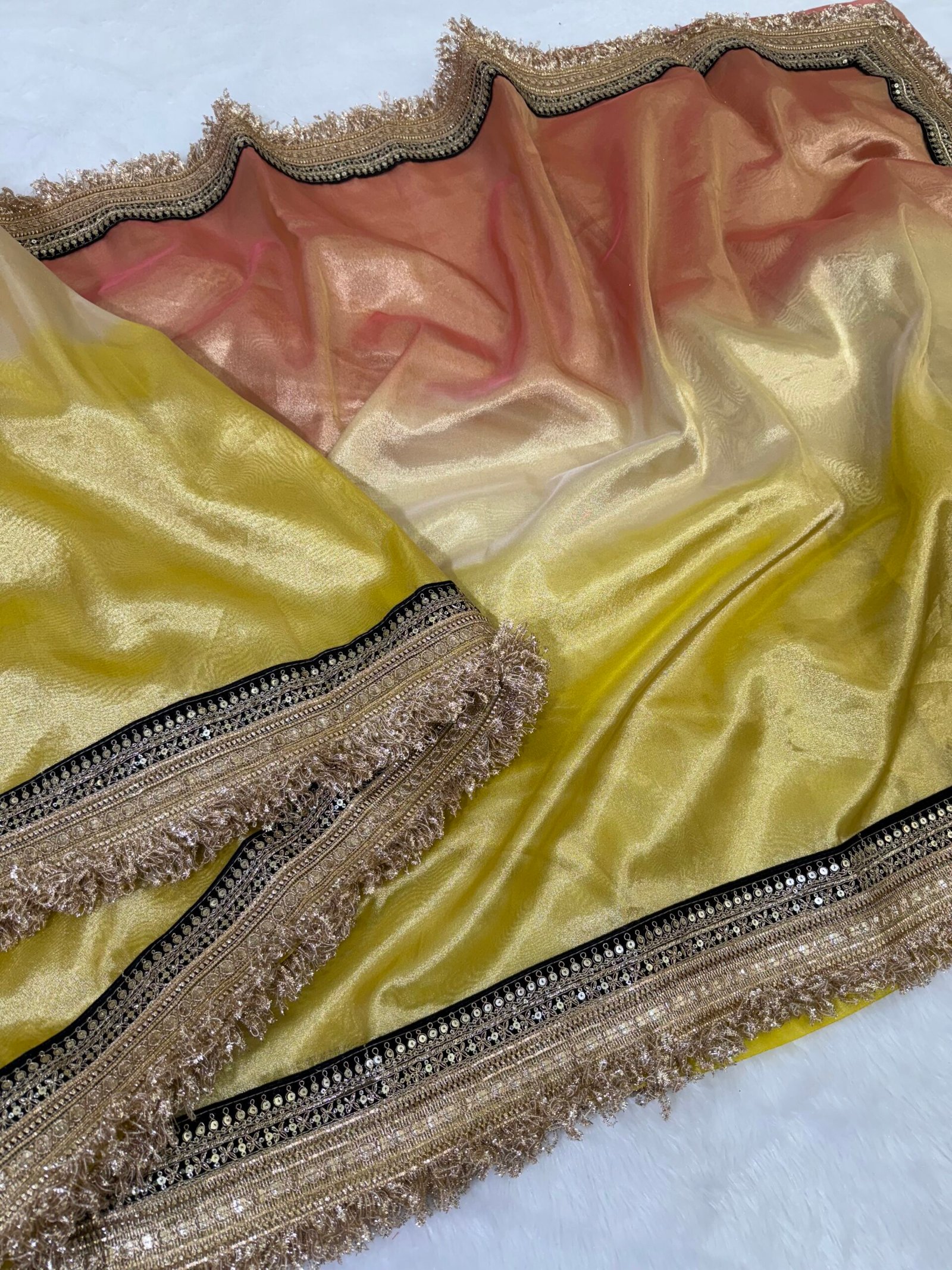 Banarasi multi color tissue saree with maharani lace three beautiful color shade gorgeous look 😍 pallu with and blouse pcs