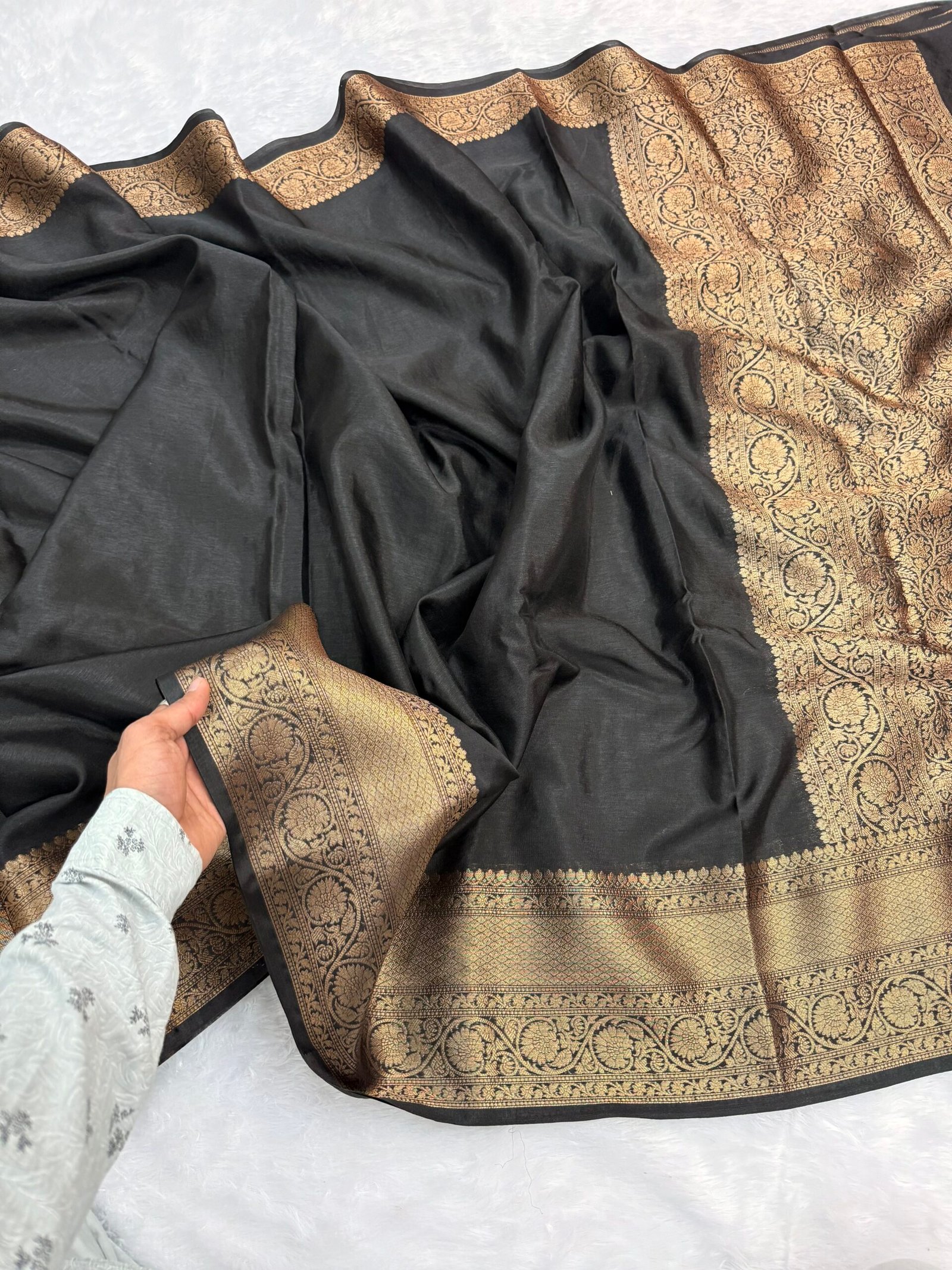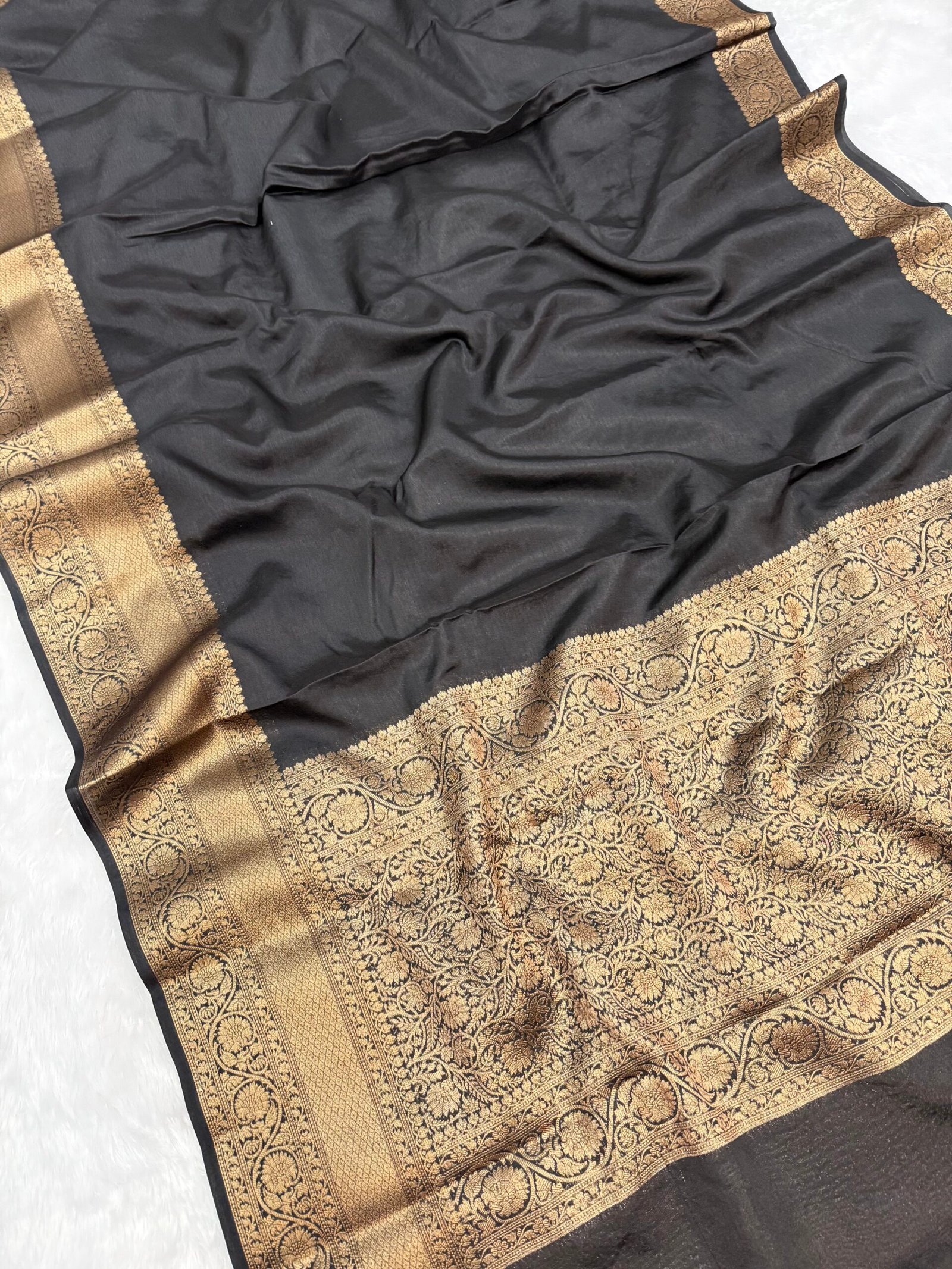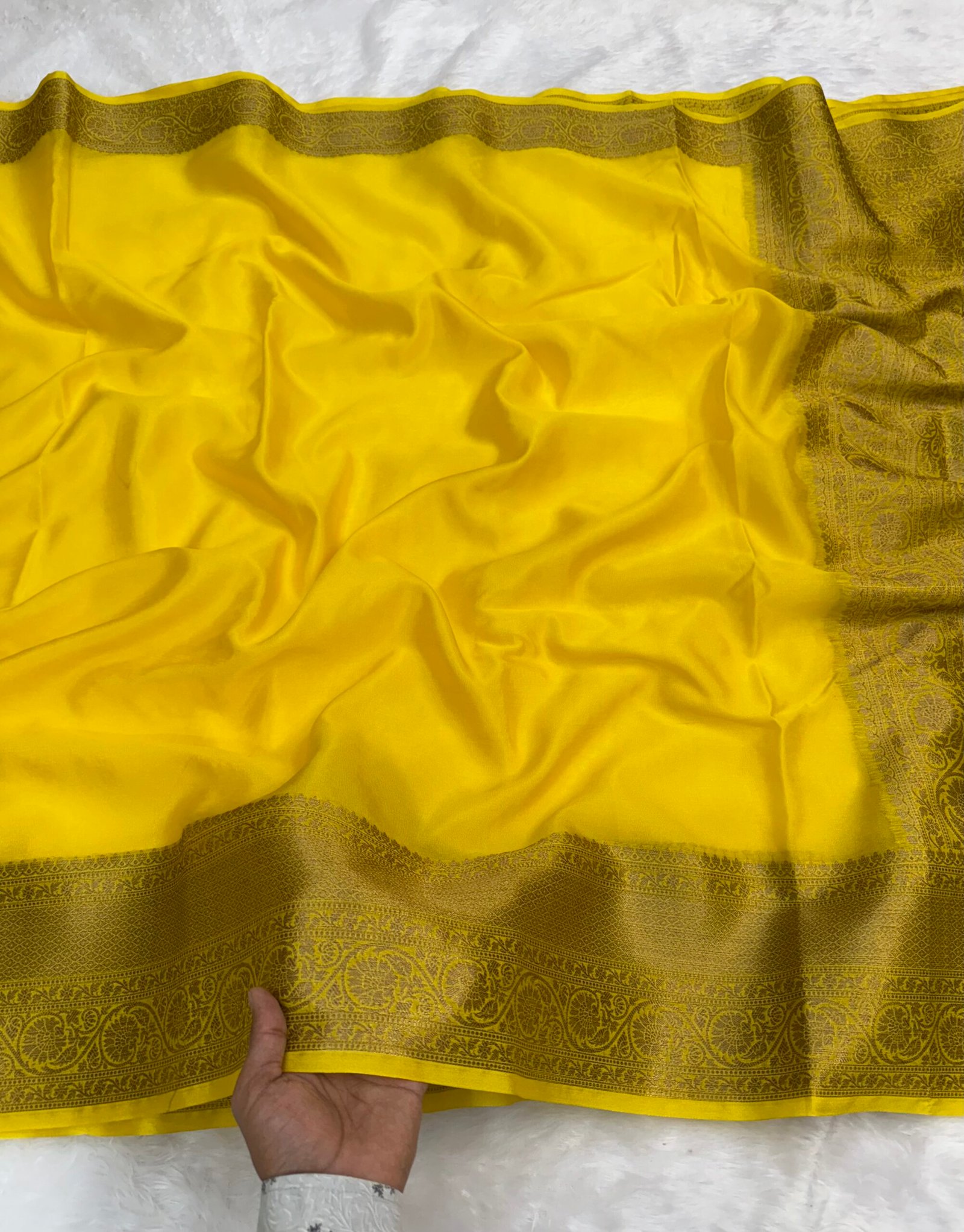 Banarasi warm silk saree zari weaving Banarasi border very soft saree two beautiful color shade yellow and black traditional pallu with brocade blouse pcs
