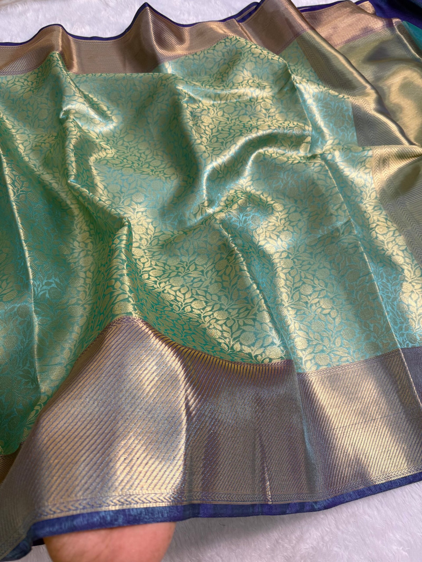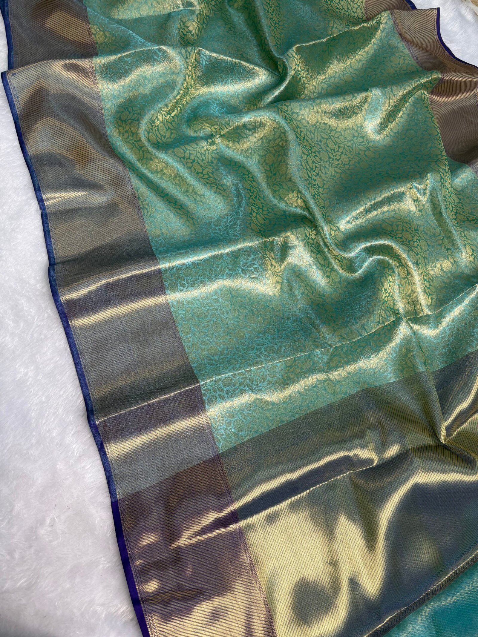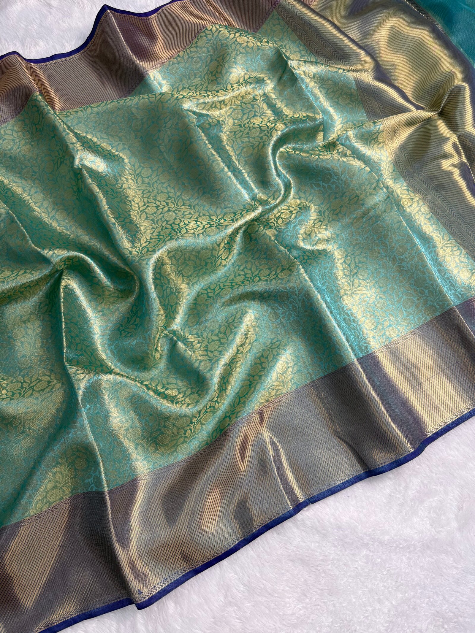 Celebraty inspired Banarasi tissue silk saree Full body zari weaving flavor green color shade Banarasi border premium look pallu with blouse pcs Gorgeous saree 😍