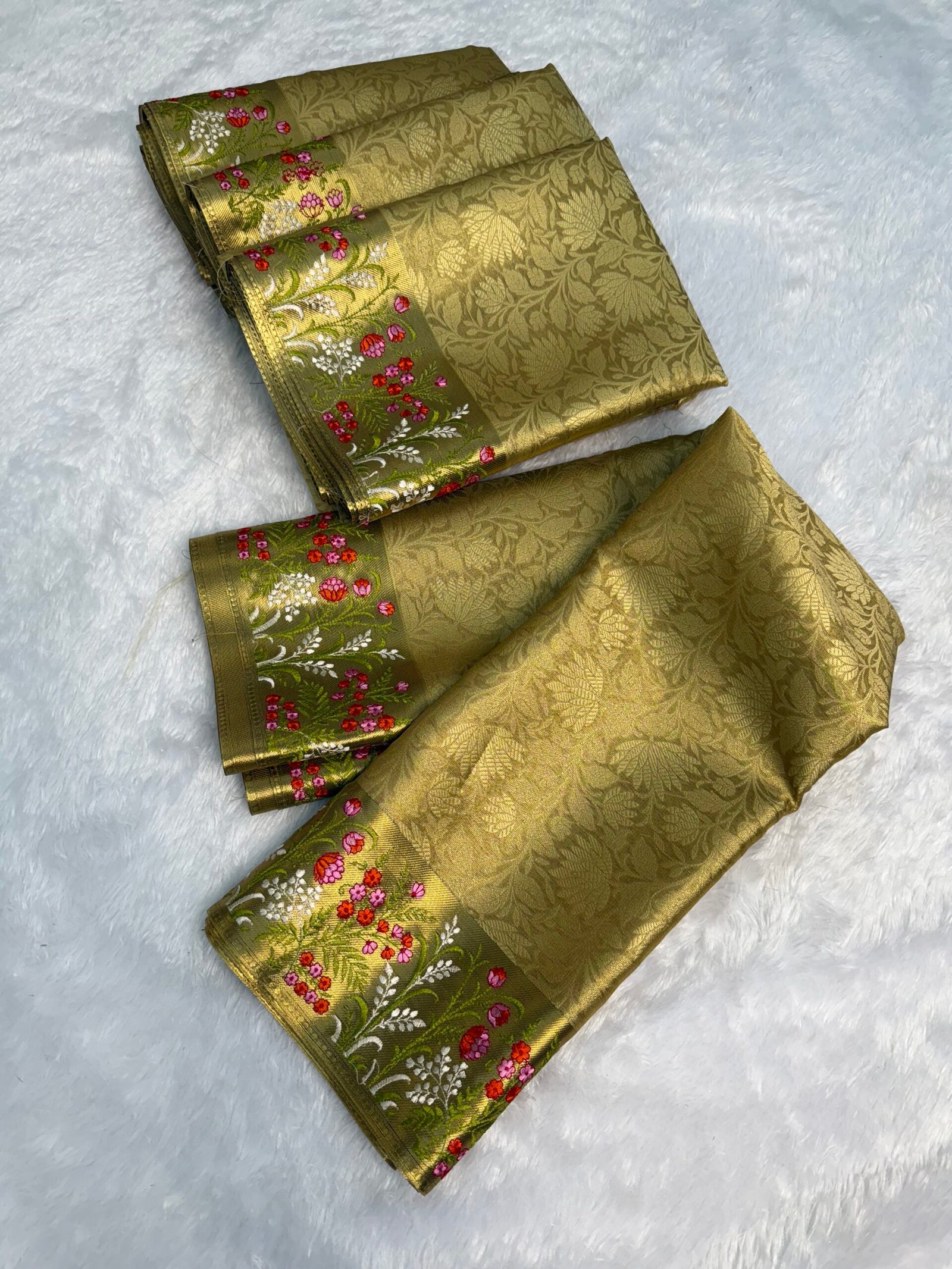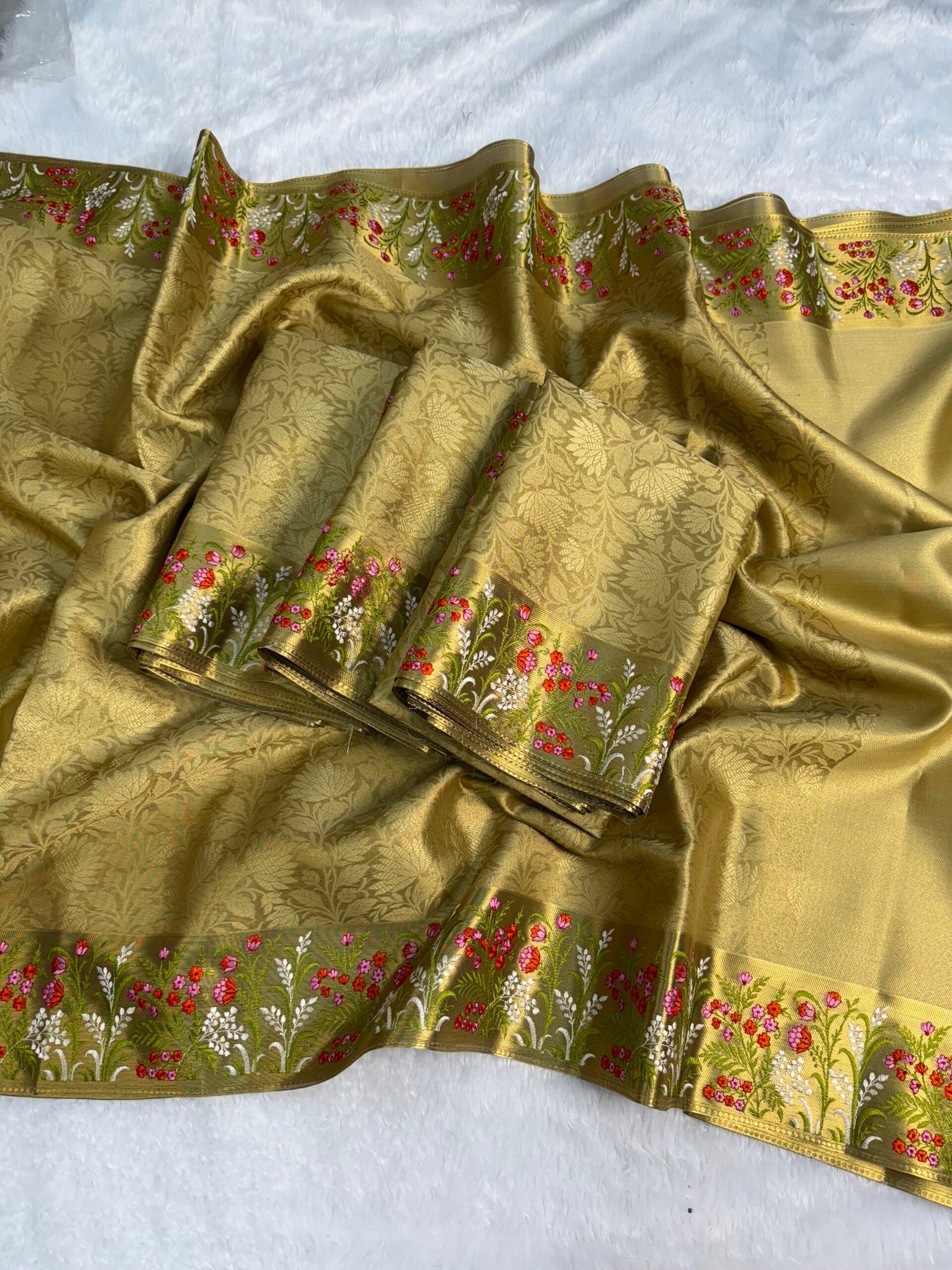 Nita Ambani mam inspired Banarasi tissue silk saree full body zari weaving flavor Banarasi border with embroidery work rich pallu with blouse pcs