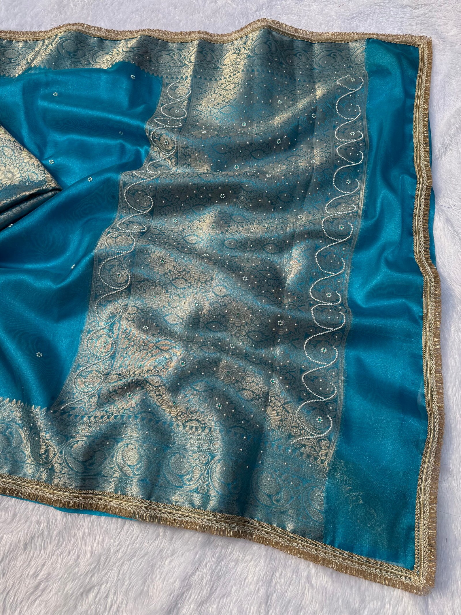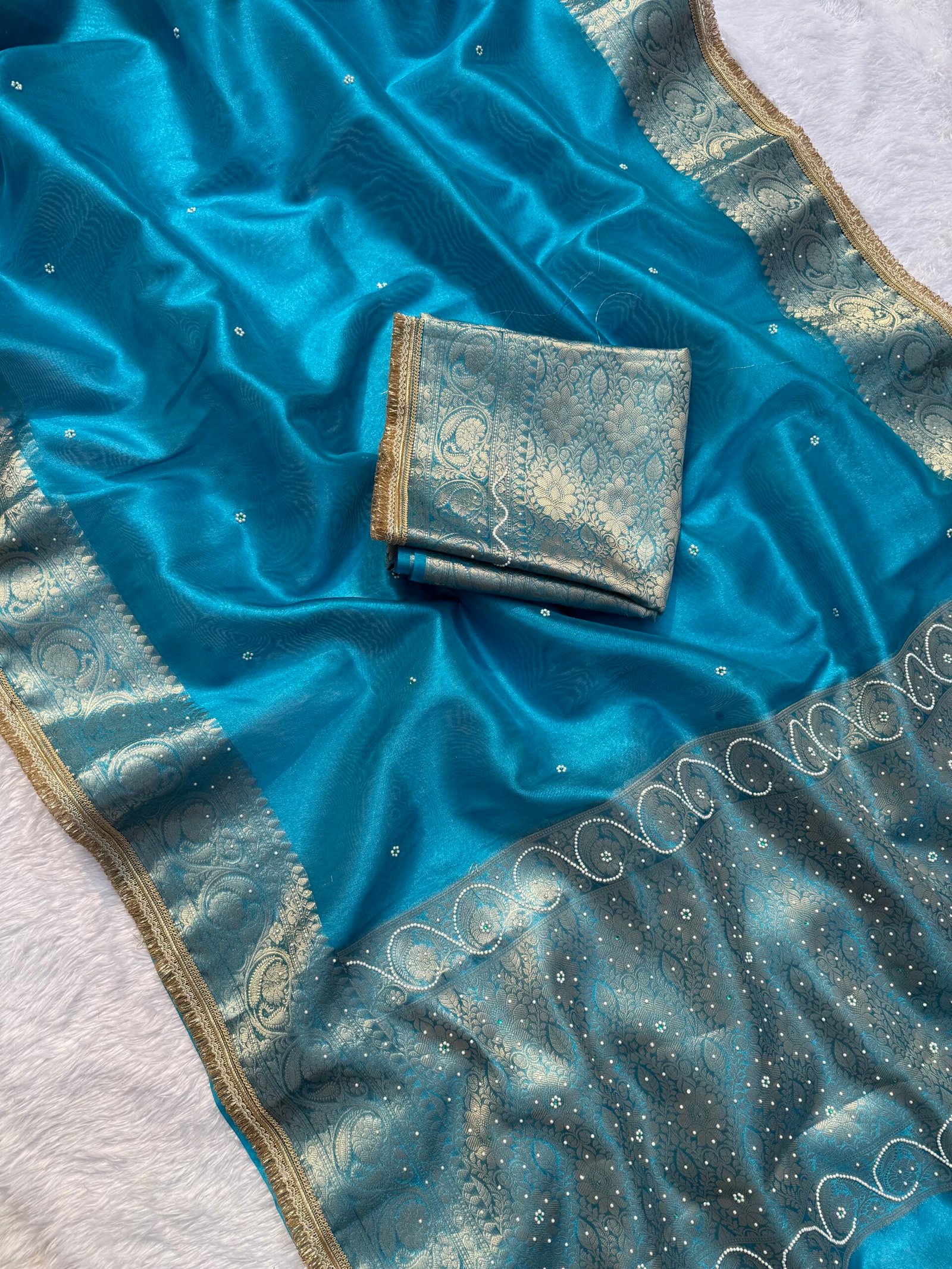 Stone work Banarasi tissue saree